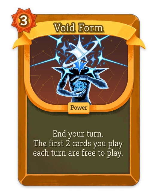 >>735826280its a little weird to me that its in regent's card pool at all, he has no dex buffs and clicking on it makes me feel weird the same way clicking on leap in spire1 did because it gives me no direction besides making void form better. I dont think its weak I just dont really know what to think about it.