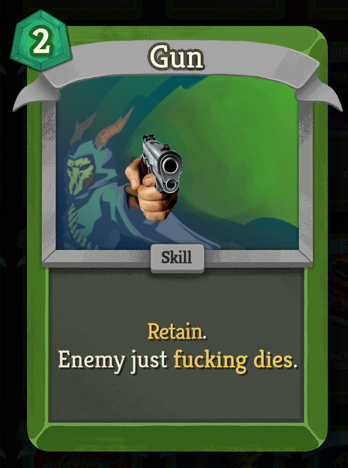 >>735829819You're always offered at least like a true grit or something to fix your cycle little by littleBut the important part is the character doesn't do shit on 3 energyHis cards have no numbers on them, everything has prerequisites and powers you need to play first, so you need infinite energy and draw to not get assblasted before you meet those requirements
