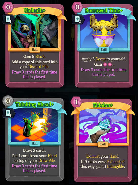 >>735830973Most my wins before A10 were just Thrashing, headbutt, repeat.Other good stuff is Pact's End, you need some minimal exhaust to enable it (ascension's bane = 1 exhaust). After that, Pact's End and headbutt will clear everything except act 3 bosses.For A10 I got lucky with the candle bitch giving me Bright Flame. It's not an infinite, since I have to spend max hp for it, but once I exhausted down to 10 cards I can loop Pact's End and Bright Flame till both act bosses were dead