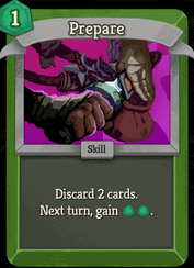 >>735795160China wonDeprecated Prepare and Prepared returns: "Common - Skill - Cost 1 - "Discard 2 cards. Next turn, gain 2(3) Energy." -> "Common - Skill - Cost 0 - Draw 1(2) card(s). Discard 1(2) card(s)."