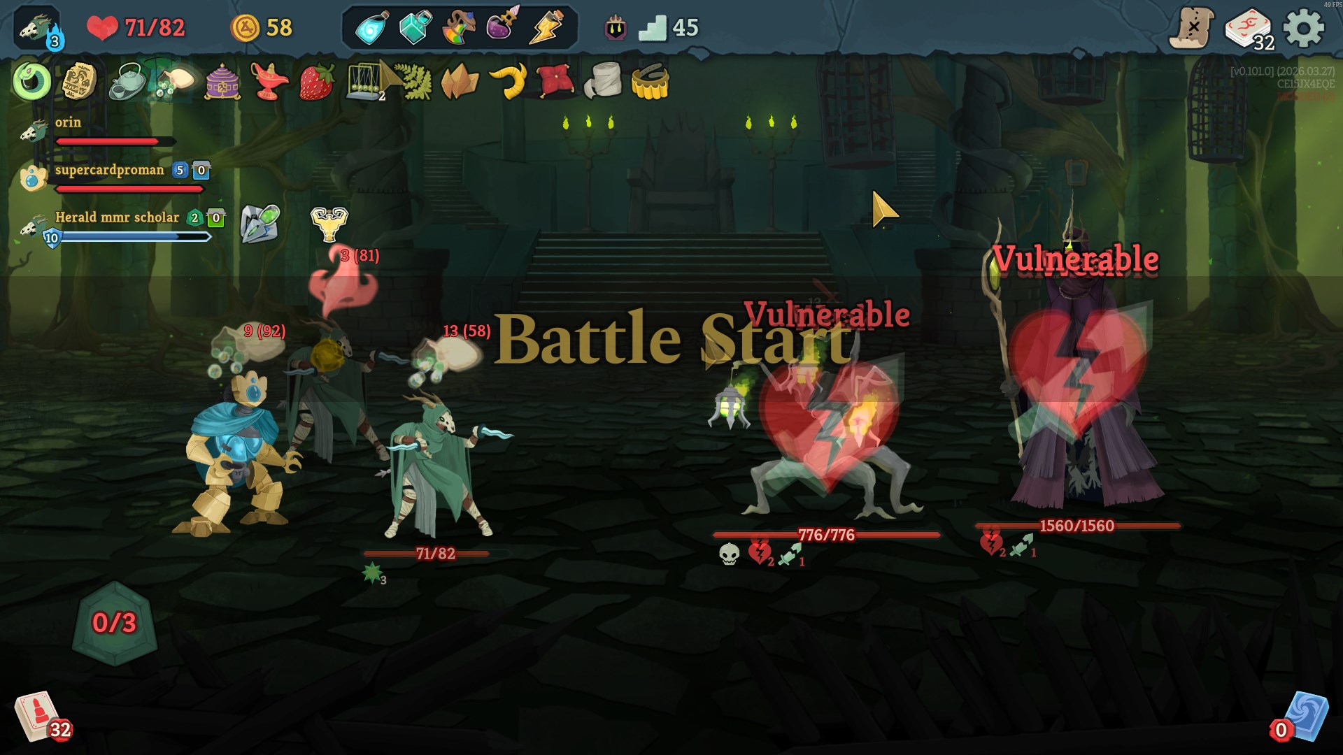 >>735794320But you don't know if you'll be the one pulling any of those first, or if somebody else will. I just made it a habit myself that if I draw into a debuff I play it first thing possible hopefully before anybody else can do anything. In some cases there's no way to coordinate certain combos like Tag Team, no way to convey to another player that you're going to use Coordinate to give them strength or similar supportive card effects. What can I do better then? Simply play slower or wait for others to play first? I notice that in the lobbies here, I'm always the last one to click the next node or I linger a bit too long in the shop or rest window because I'm actually giving thought to what I want to upgrade or buy. I don't know if that bothers other people or not