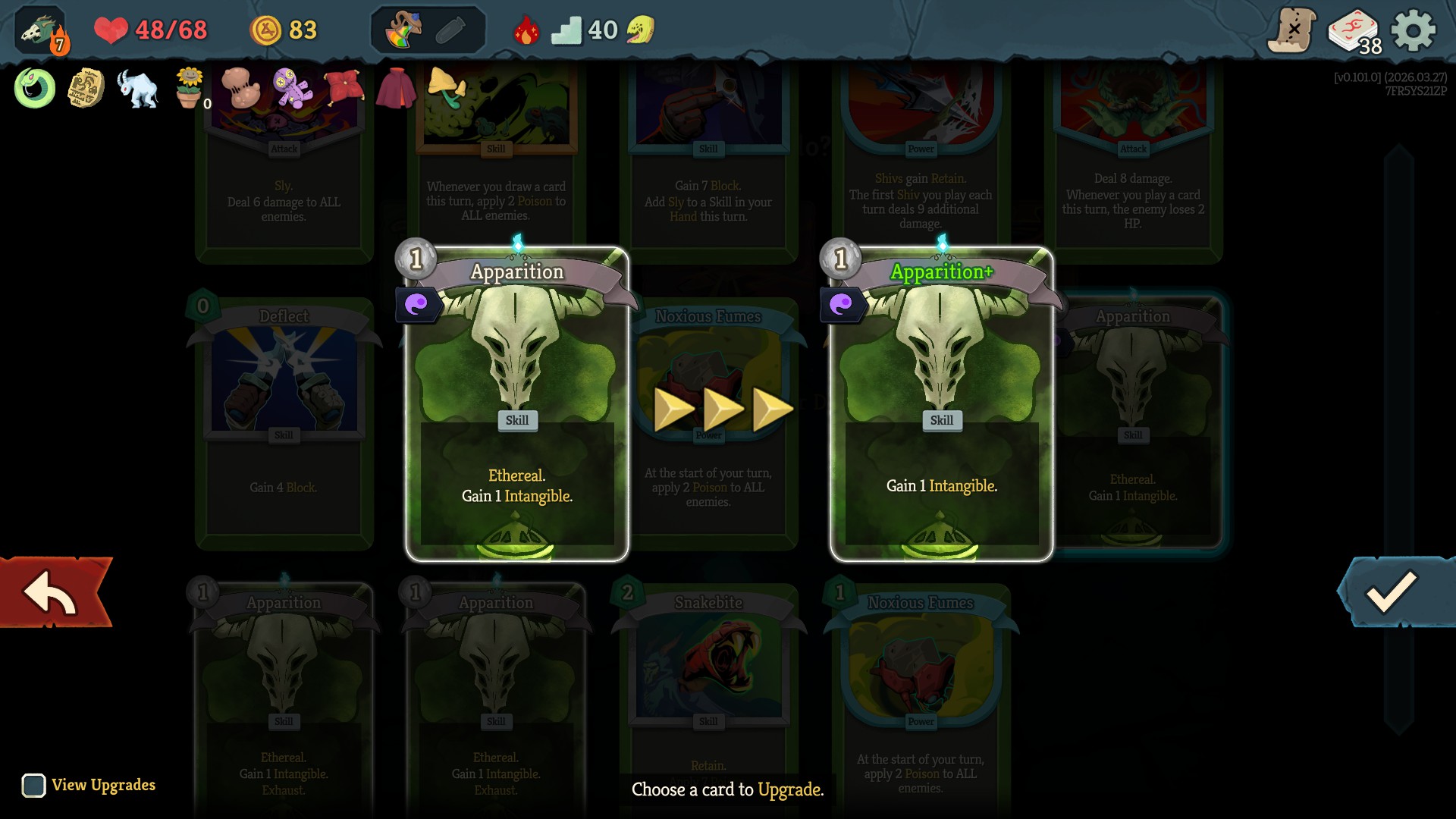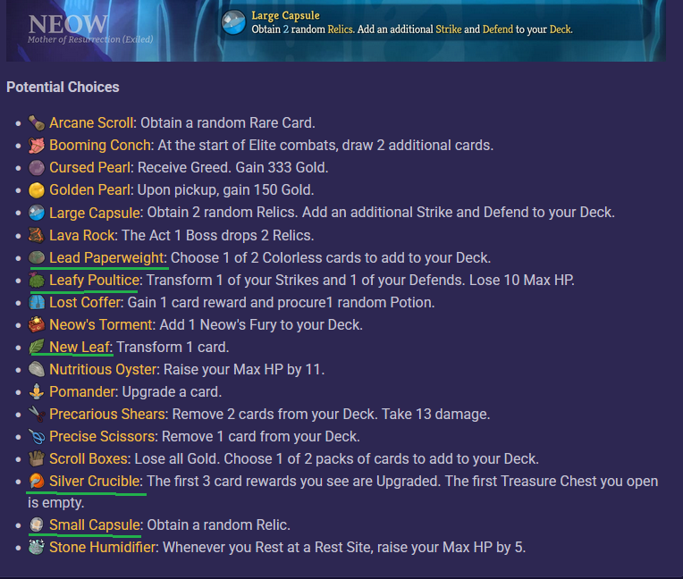 >>735828419Option 1 is can be rose, fiddle, or earingOption 2 is cape, fog, or talonOption 3 is choices paradox, jewled mask, parasol, or music boxSo the bottom option only has a 1/4 chance of having a downside (parasol is a downside) but the middle option should be safe enough most of the time since cape's -9 isn't that much compared to how much hp apparition can save and fog is still net -2 cards. Talon adding 2 curses can be pretty bad if have a very small deck, and notably if the 2 curses are worse than the wishes then parasol is also going to be bad for your deck.