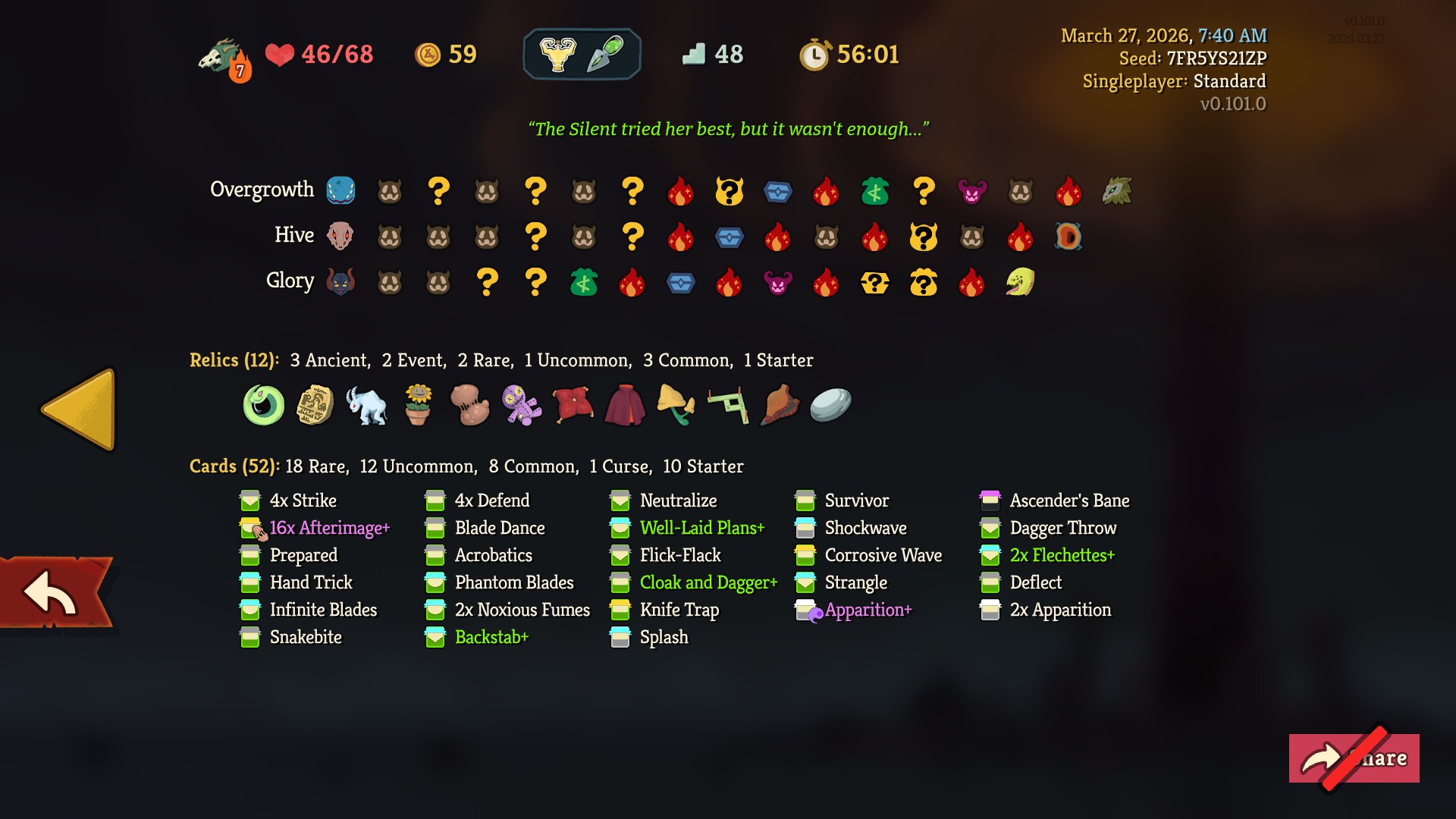 >play Silent nearly 10 times now>never get any Sly synergy so I don't even know if it's remotely as broken as people hype it upTh-thank you... Slay The Spire 2...