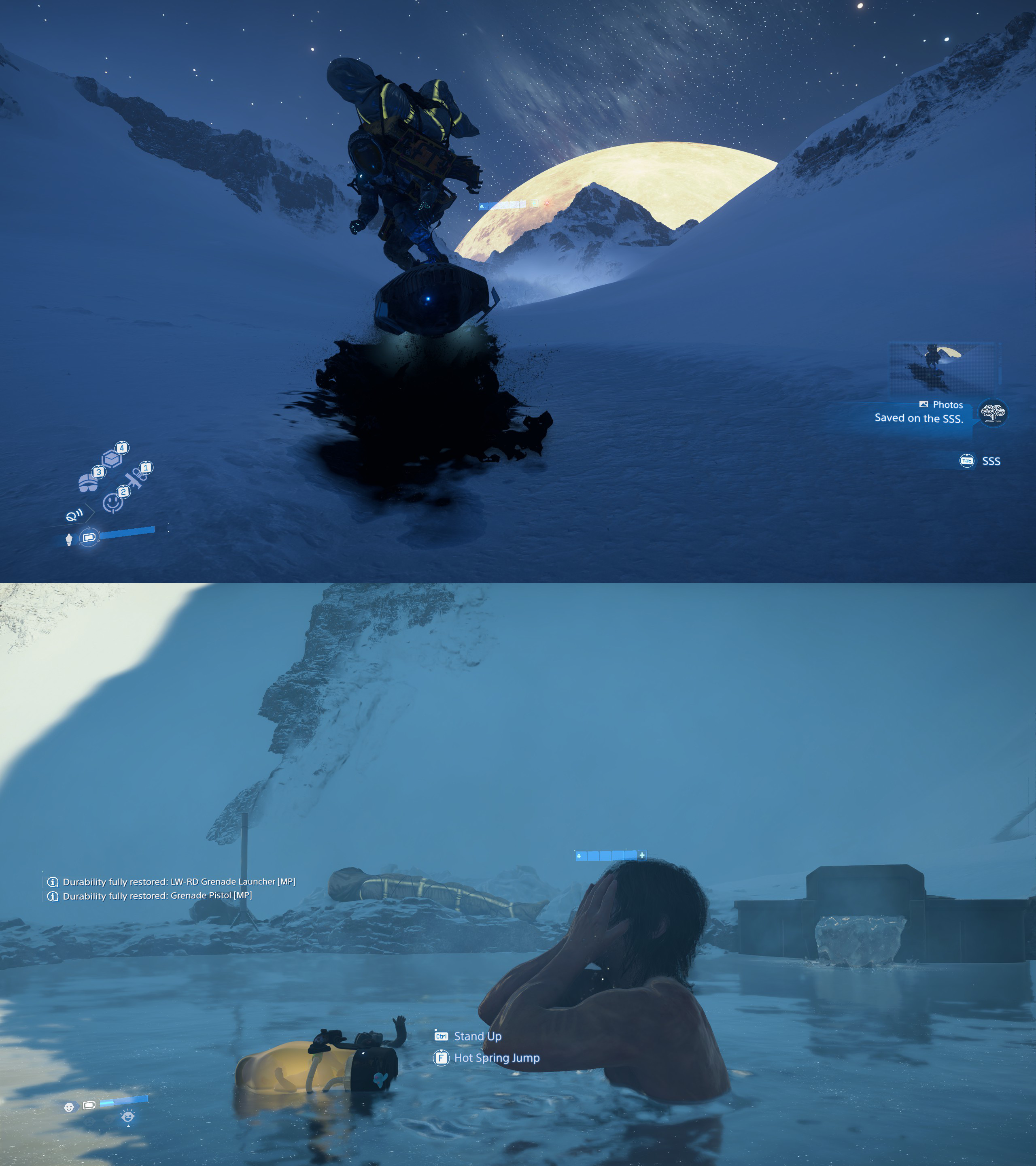 Kojima really took the shitty boss with cool design from the first game, put him in a substory, gave a proper background, the food ration, a big ass bt-cat sidekick with Gojira-like boss fighting theme, and most important an ability to make this fight better and different — a bloody coffin board. Too bad it's not customizable considering the surf culture of Australia. Still It's an extremily fun thing, especially if you ride it through the mules while blasting Police Truck. Also it reminded me Escape from L.A. a lot.