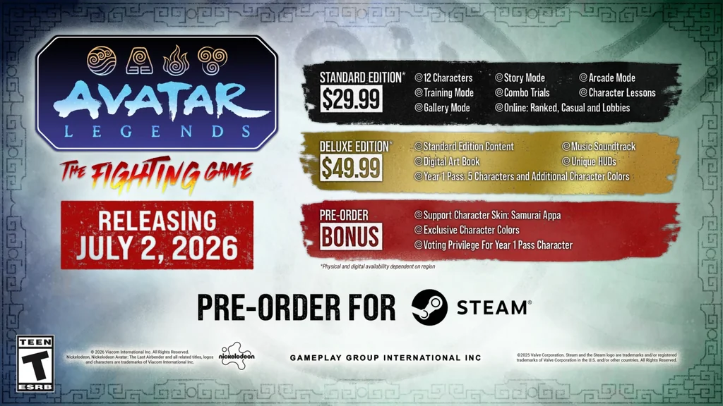 Avatar trailer also came out with info on shit.https://www.youtube.com/watch?v=NSPaqSNHupo>$30>July 2nd release date>10 characters revealed, 2 more left to show>Aang, Korra, Katara, Zuko, Toph, Ozai, Azula, Sokka, Zaheer, and Kyoshi>Season 1 character vote is part of the pre-orders>Looks pretty fucking barebones outside of the fighting, only thing advertised is Arcade Mode and Rollback