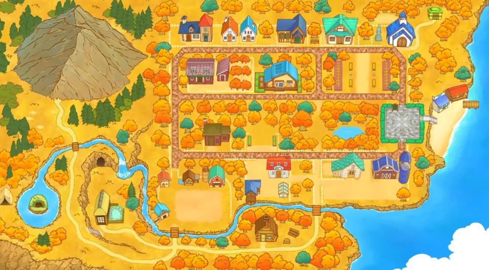 If you pay attention to harvest moon the town is effectively just a big loop because it expects you to go out and talk to people. Everything is just placed wherever in Stardew