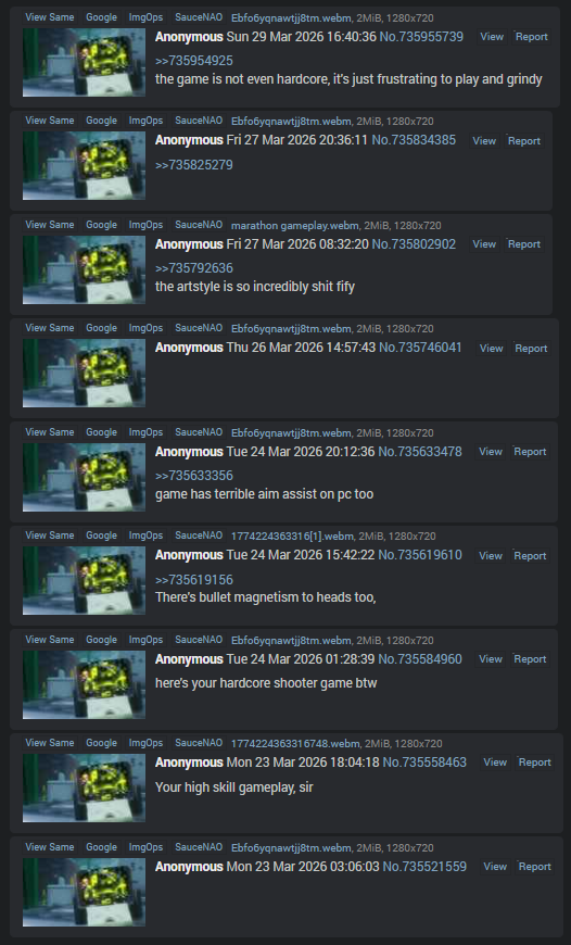 >Be Bungee.>Develop a hardcore game for a niche audience using a AAA game budget.>Game needs to sell to a large audience to be financially viable.>No fuck that lets design a game that only appeals to the most hardcore tryhards.>Oh and lets also beg reviewers to not review the game till we release the endgame map that has a destiny style raid boss.>But also lets lock the ability to actually play this raid boss behind endless grind and convoluted requirements while also having enemy players be able to kill you ruining your preparations ensuring only people who play this game like its their job can play this new content.What the hell is Bungee thinking.I was genuinely ready to buy Marathon if the Raid they added was good but now i heard all the BS you have to go thru just to be able to play it.