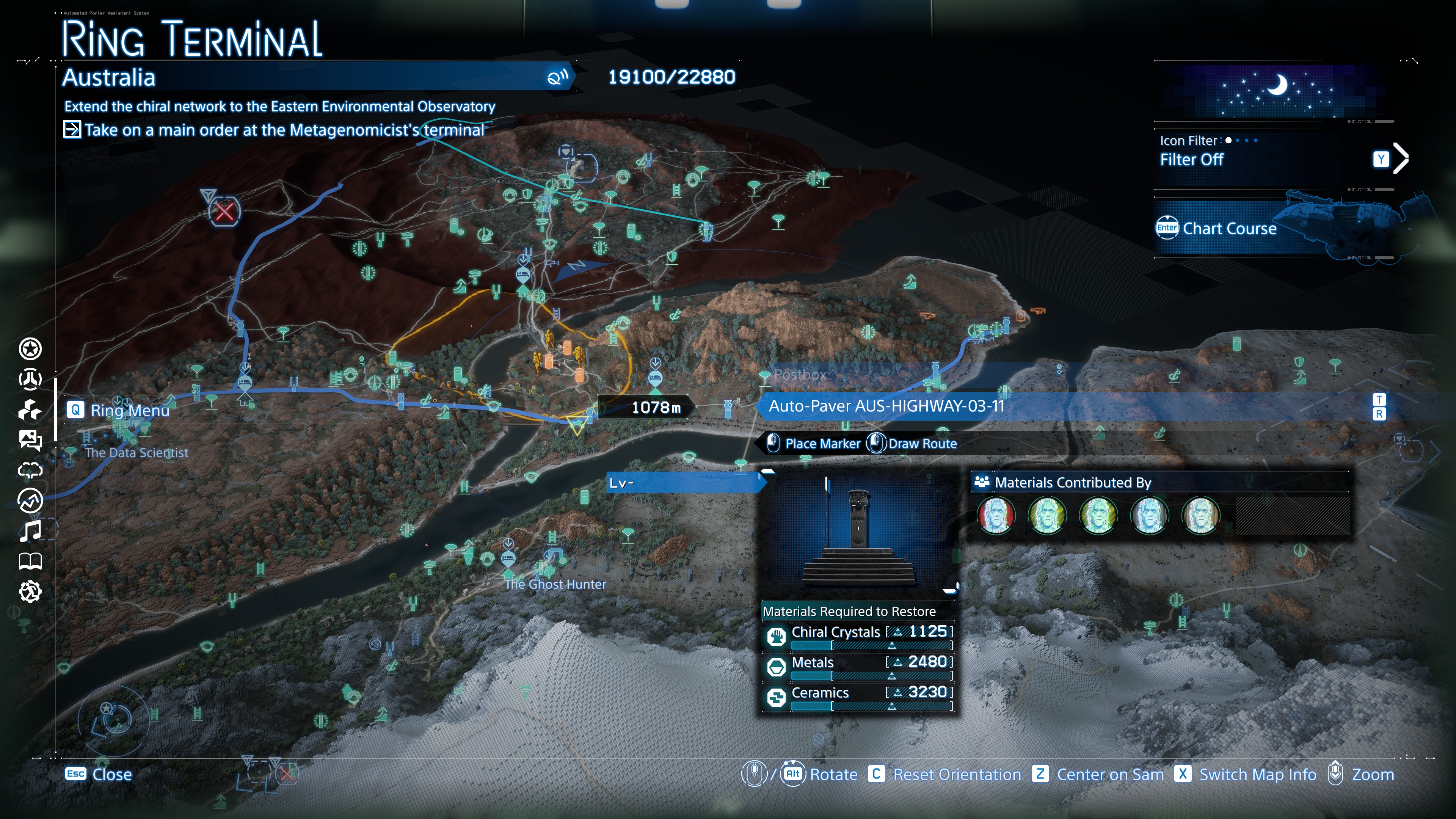 Almost built and fully upgraded all infrastructure up to East Knot. Just gotta Level 3 upgrade the mine above the Northern Observatory, then I'll have the ceramics to finish the roads.Just a constant loop of farm BTs for chiral gems, mine alloys/resins/metals, transport via carriers/monorail/trucks.Once I get the last of the roads done I'm gonna take on all the new orders I have from everyone it seems.One thing I didn't realize until later was that its a good idea to keep the Magellan stocked on materials.95 hours inOne thing I will say is that i've never been caught in a sandstorm outside of that one main mission to the weapons factory. I'm guessing the game will have them spawn for certain orders, just rare to see them around the map.Thought my game was glitching a few times until i read that entry about the train in the sky, i actually thought it was monorail cars just loading too high lmao