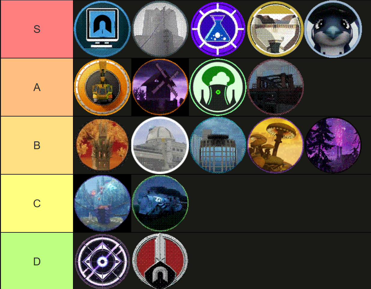 >>735986643Strongly agree with the tier list except I think Fragments deserves to be slightly higher if only because I liked the theme of portal worlds coming together in one area, Voussoir should be lower due to requiring cold resist to be tolerable, and Rise should be C tier since it's so short and pointless feeling.