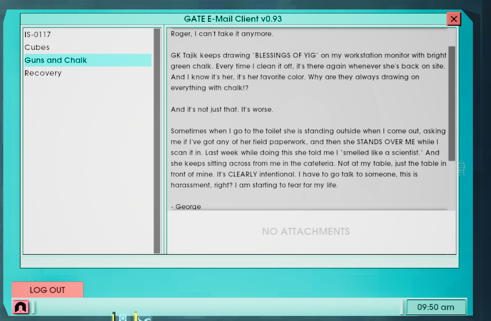 >need to disable the security in the specimen containment sector to proceed>the same sector holding a scientist who totally locked himself in one of the high priority cells marked EXTREMELY DANGEROUS DO NOT OPEN by complete accident for no reason at all>I can see where this is going>bruteforce past the machine guns with cubicle walls and a ton of bandages>get through the area and continue without ever turning off the security>game completely ignores this and proceeds normally as though I had fallen for this extremely obvious trapFor all of the care they seemed to put into little details and easter eggs, I was very disappointed that there wasn't a plot fork or failsafe for getting to the Tarasque without releasing IS-0012. I was expecting something like Metroid Fusion's hidden cutscene for getting out of Sector 4 without activating the red doors, or at least a bullshit invisible wall or unopenable door, but the game just marches on like nothing ever happened. I even went back to the cell after beating the game and his NPC was just chilling there. What a way to drop the ball.