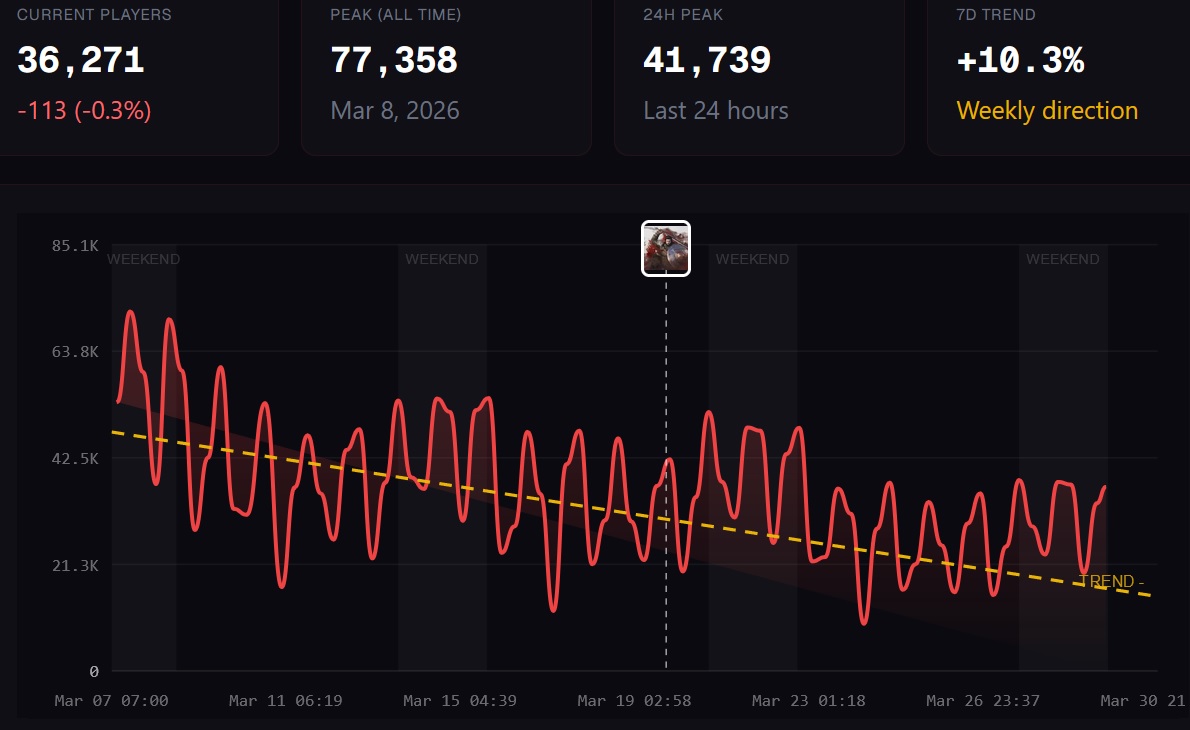 >>735989201They can't, the game is cooked. Peaked under 40k at weekend primetime.