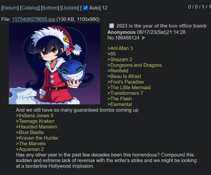 >>735995828Movies pretty much stop making money the second they're out of the theaters, especially now that DVDs and BDs are basically extinct.Even merch doesn't have the pull it used to, so the only real long-term money is whatever trickle they get from streaming services.If a movie fails, it's failed, there's no way to dig it out of the loss unless you get VERY lucky and it goes viral out of nowhere before it's removed from theaters.Games, you can update them, add MTX, cater to whales, add DLCs, put it on increasingly deeper sales over the course of like a decade, or easily cultivate a subreddit that sucks your dick regardless of the game's quality and have them naturally wank the game across the internet by osmosis.Of course this doesn't work with games that absolutely FAIL fail, like how Concord flopped so bad that even the most pessimistic analyst having a bad day wouldn't be able to come up with numbers that low.One understated thing I feel more people need to pay attention to with "Concordlikes" where the game's so poorly received that important/big updates don't bump the playercount much. It happened to Highguard in particular, Highguard released an update that helped fix the game's biggest complaint and allowed more players on each team to liven up the matches as requested, but the playercount didn't even bounce. Nobody cared enough to return to the game to say "maybe it's fixed now?"Marathon, same thing. A new update hits and it just kinda "eh". People that play Marathon play it and slowly leave, people that don't play Marathon don't give a fuck, so the game continues its downward trend.That SHOULD be a huge red flag to Bungie/Sony, but them trying to push through it kinda gives me the vibe that the game's one of those "make or break" projects that failure is something they can't just facetank like a healthier company might.