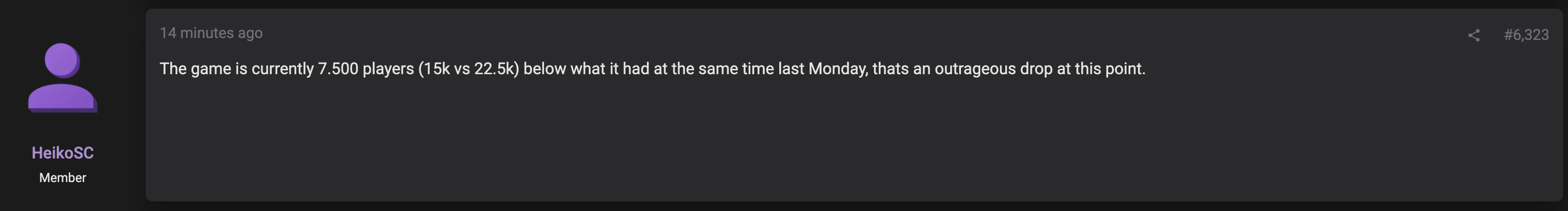 >Down 15k (over a quarter of its players) in 1 weekLOL