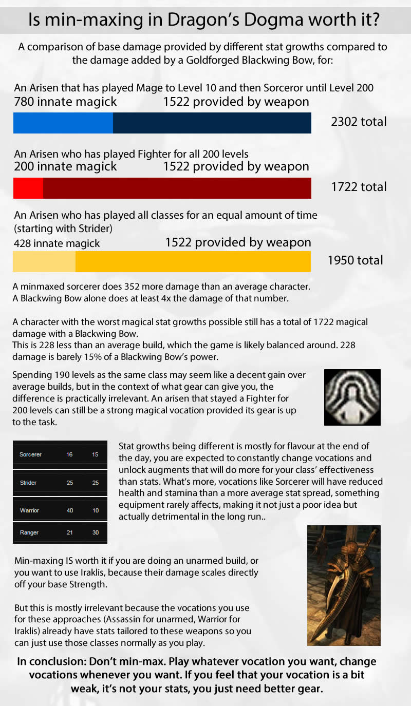 I almost didn't bother playing the game because I thought min-maxing was something you had to do or get soft-locked later. Turns out that was a complete fucking lie, I just played the game and leveled up every vocation and never had an issue. Usually bad performance in combat was a result of poor party composition or underpowered weapons.