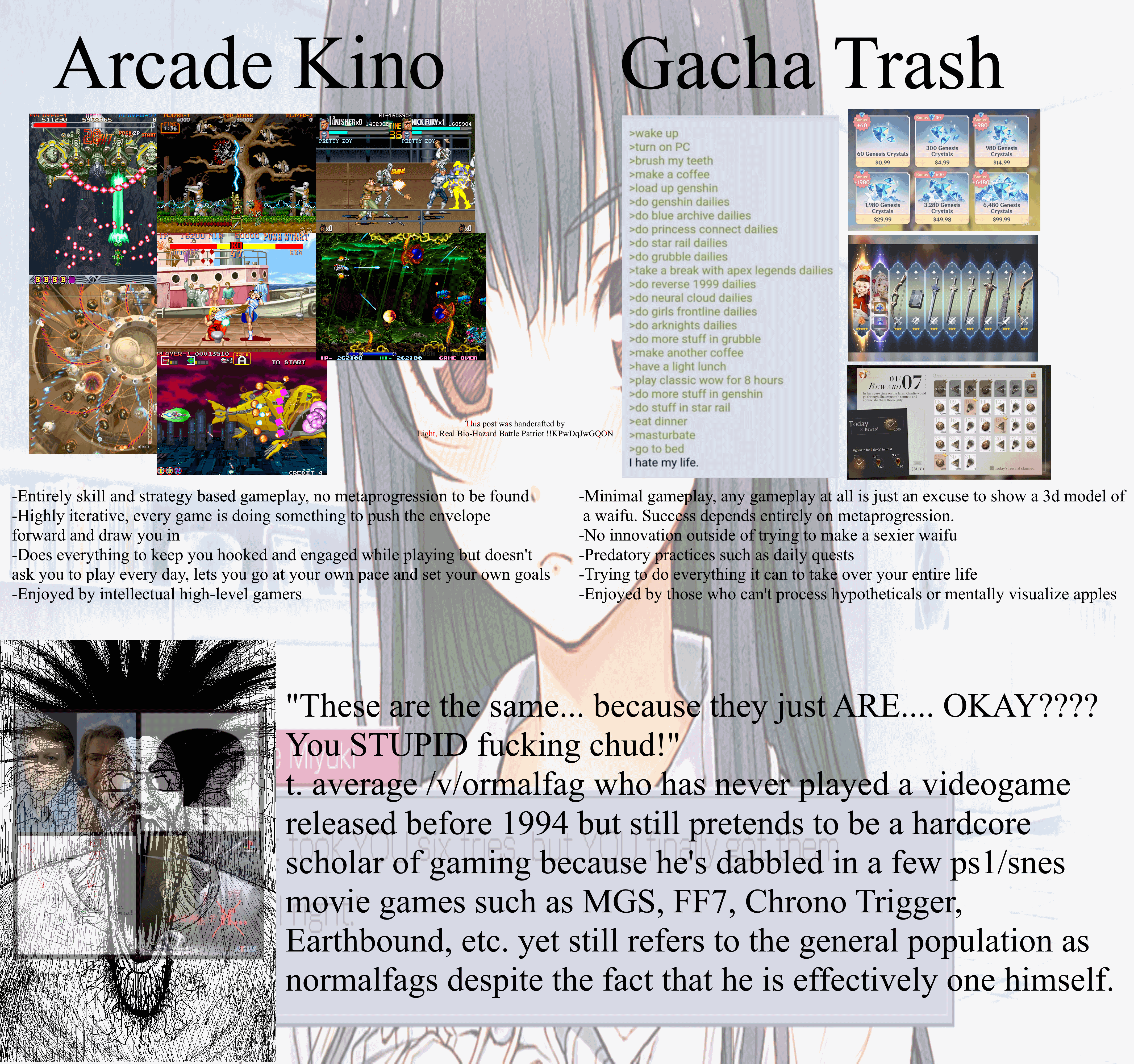 >>736011927>lucky to be born in this timeline>fanservice is stuck in live service slop with zero gameplay>older games have better gameplay and even better fanservicewell at least it's easier to emulate games now, but i wish new games were cool