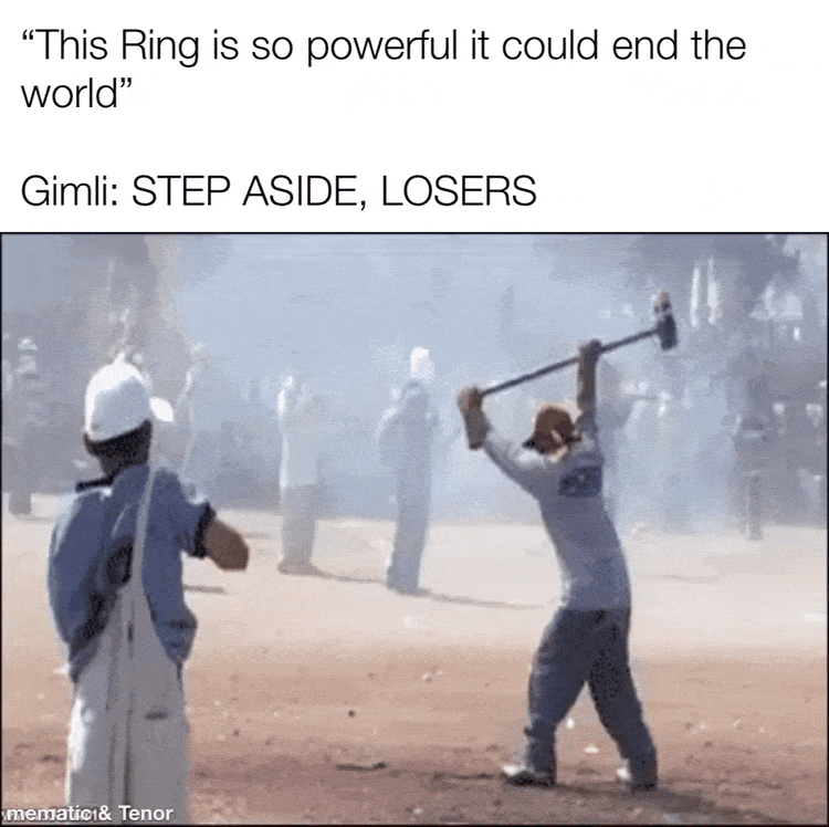 >>736012190Elrond literally tells Gimili that they can't destroy the ring by means that they here posses.
