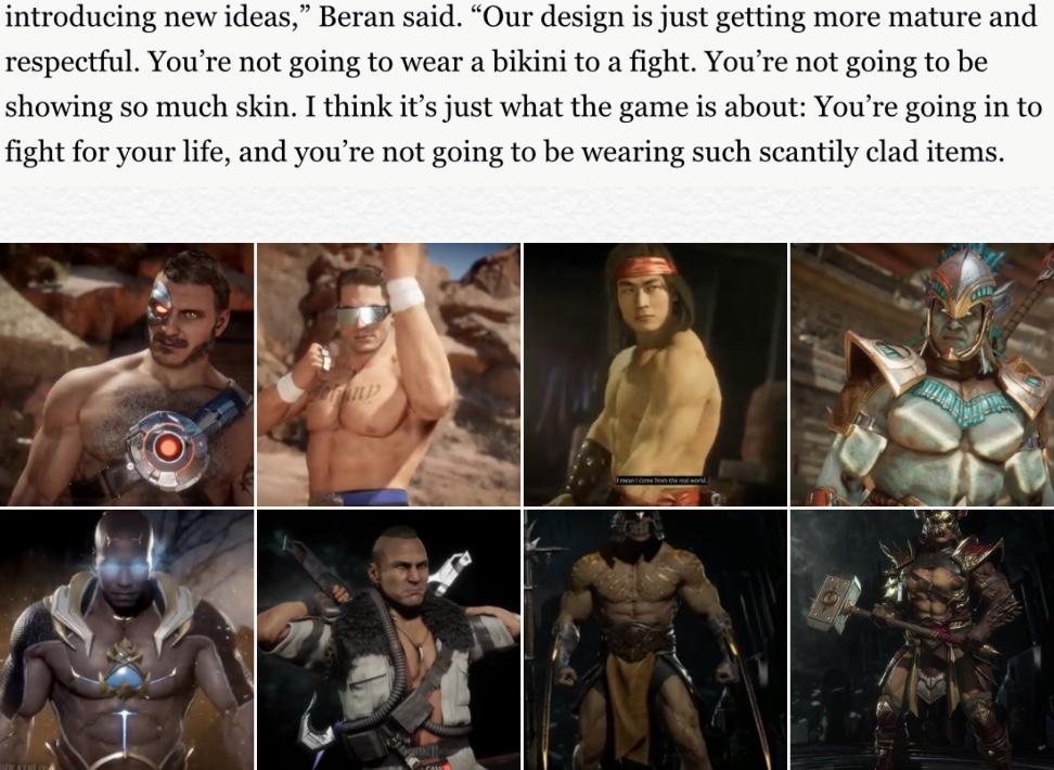>>736017031I don't think it's even women ruining the game this time. I saw in some interview or something that the main character artist for MK12 was a homosexual man. And yeah, obviously you should never let a gay man design your killer babe characters.
