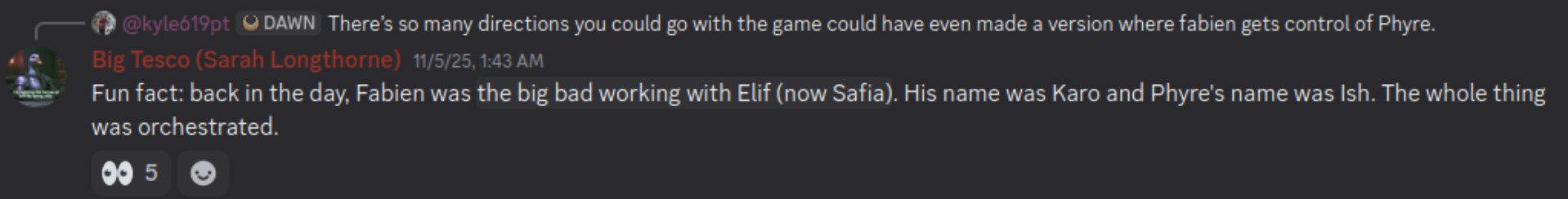 >She also mentioned that they weren't really happy with how anti-Sabbat Phyre is railroaded into being