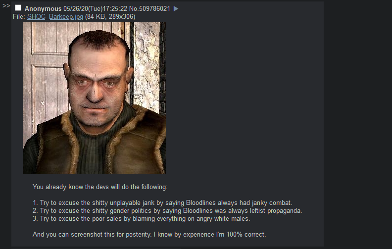 If you think VTMB was a game about estrogen, and VTMB2 ruined it by doing estrogen wrong, I don't know what to tell you.