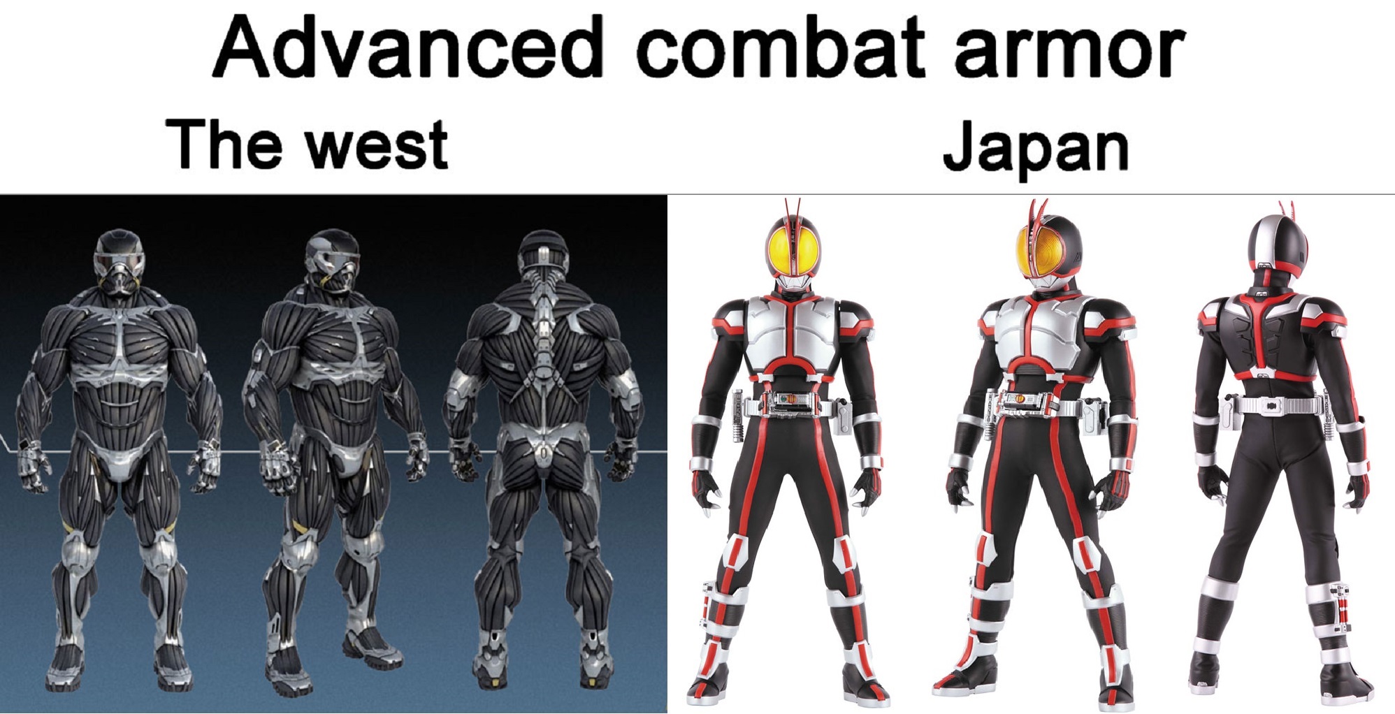One's a prototype military model, the other is a fucking children's super hero character. At least pick something from a military themed series like Maschinen Krieger