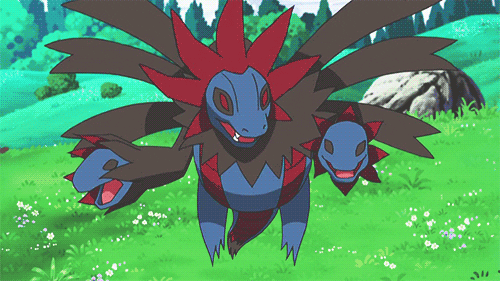>about a hundred seemingly random pokemon with absolutely no cohesion in type or species suddenly appear without warning appear on the shores of the beach