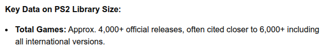 I remember the accurate number for PS2 being something like 10,200 games in total