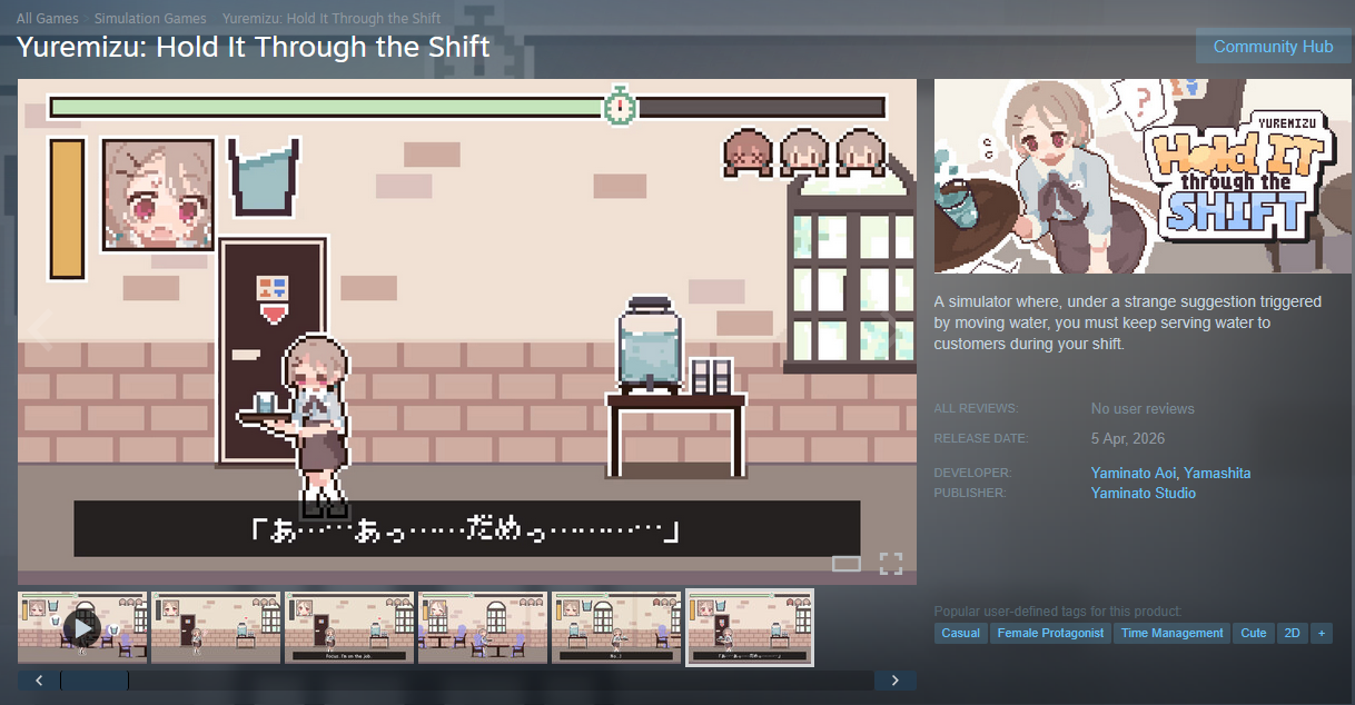 Just found this the other day. The Nips get me.https://store.steampowered.com/app/4510820/Yuremizu_Hold_It_Through_the_Shift/