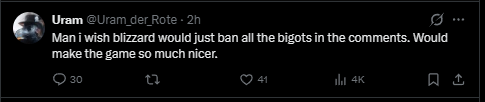 >>736032645Some of them are Wow shills and found out thats all they had so they had to go back. Also lets not pretend Asmon is even playing the game. He just logged on for one day and fcked off already. Wow has much more nostalgia which might take weak people back just for them to find out the game changed.This troonfarming is however one of the main reasons they are bleeding subs.>>736034261They would not want to risk a ban. 2009 Wow players would have nuked these events.