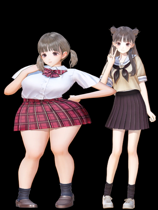 Attempt at a complete list of Blue Reflection characters that clearly have boobs, so, at least medium or averag breasts, even large breasts depending on the character:-Hinako Shirai-Sanae Nishida-Rin Sanada-Sarasa Morikawa-Mao Ninagawa-Shihori Sugamoto-Chihiro Inoue-Rika Yoshimura-Yuri Saiki-Hiori Hirahara-Mio Hirahara-Ruka Hanari-Momo Tanabe (maybe)-Yukiko Takaoka-Amiru Sumeragi-Ao Hoshizaki-Kokoro Utsubo-Rena Miyauchi-Shiho Kasuga-Xiao Meiqi-Nanaka Azumi-Kanna Hoshiya-Ayami IkomaEveryone else is flat, has small breasts, or is below average at most (Kaori Mitsui apparently, she isn't exactly flat but she's below average). Of course, the characters I mentioned have different hairstyles, hair color etc, and having larger breasts doesn't automatically make a character better or more appealing than ''x'' character, if your favorite character isn't on that long list, there's nothing wrong with that.