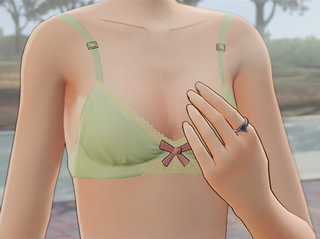 It may not have a pattern but with this close-up of Kirara's bra, it's very noticeable that it's based on Yuri's bra from the first game (see >>736048232 as reference).Mostly green underwear, her unifrom is also mostly green...Kirara's underwear works very well, I don't think it feels out of place compared to what other characters wear.