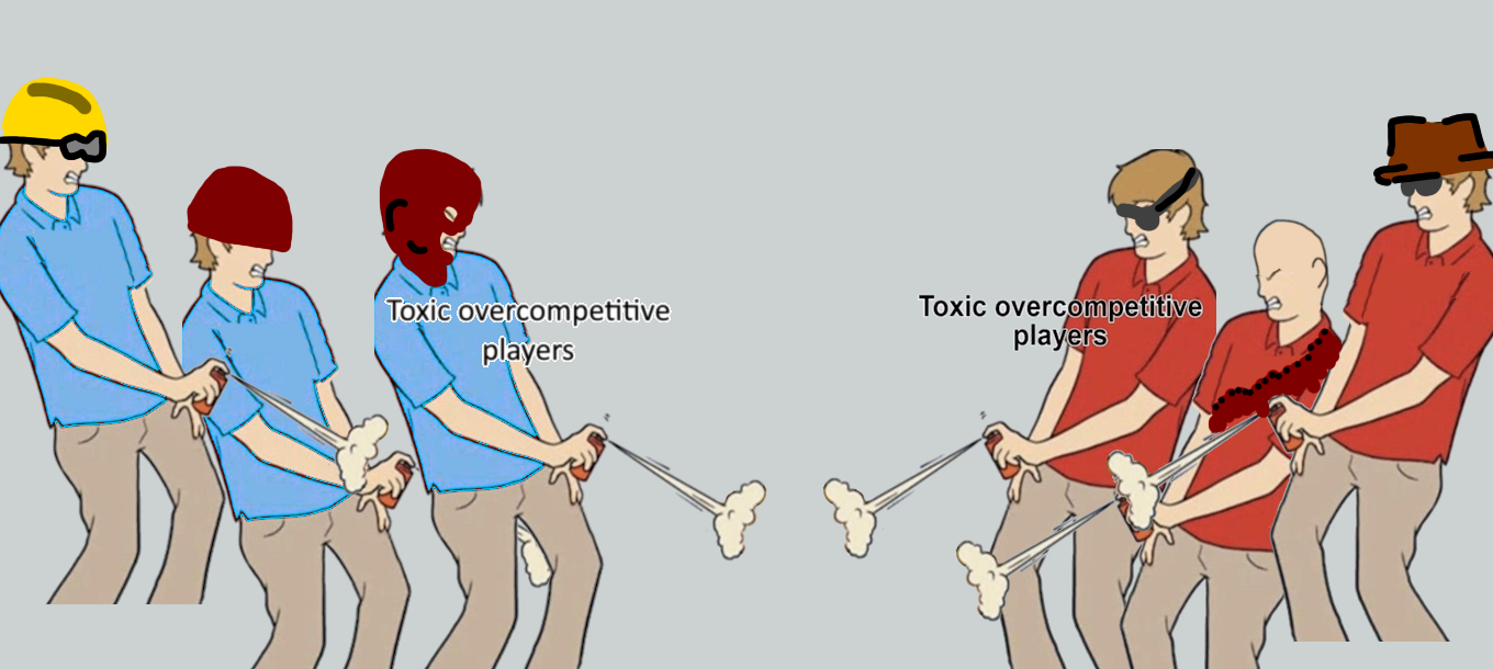 overcompetitiveness is not realI play one of the sweatiest esports shooters on the market and even at the top 1% rank people still play like retards they just have better aim.