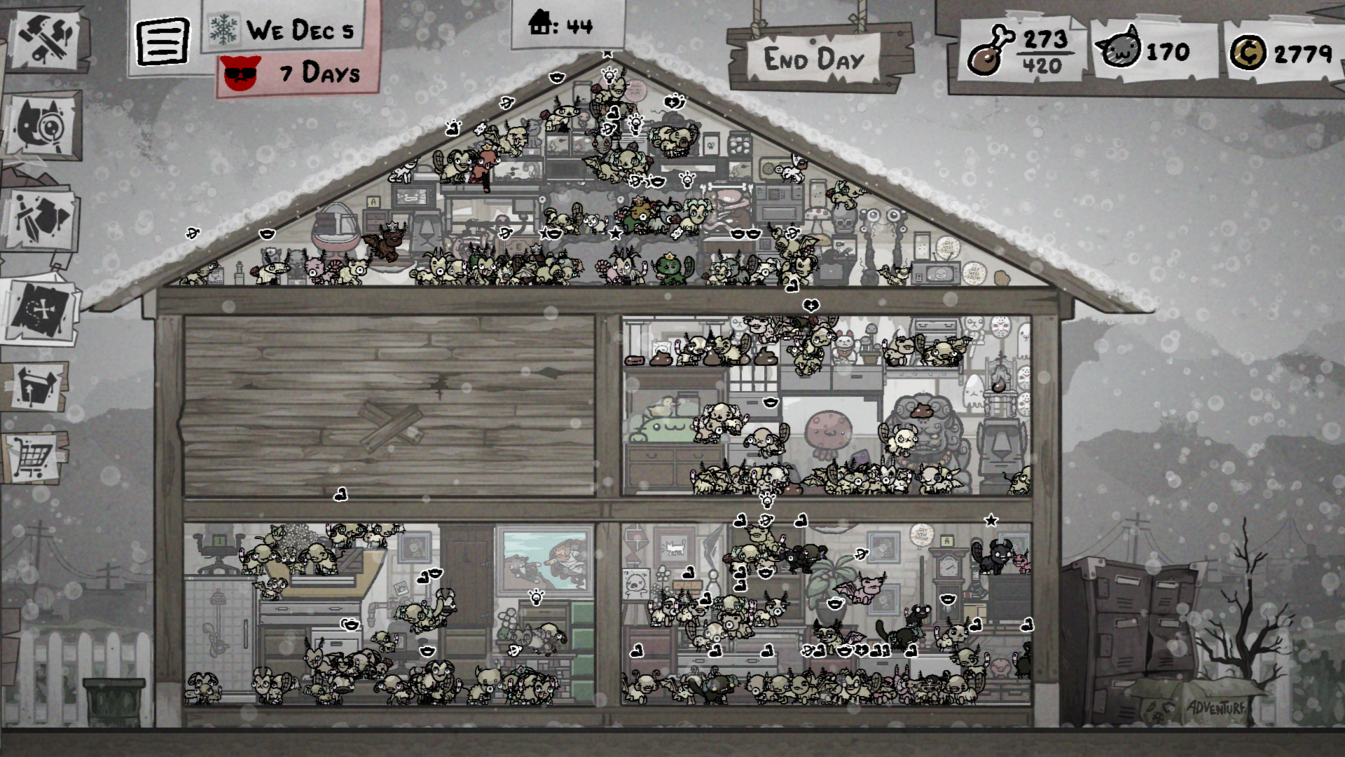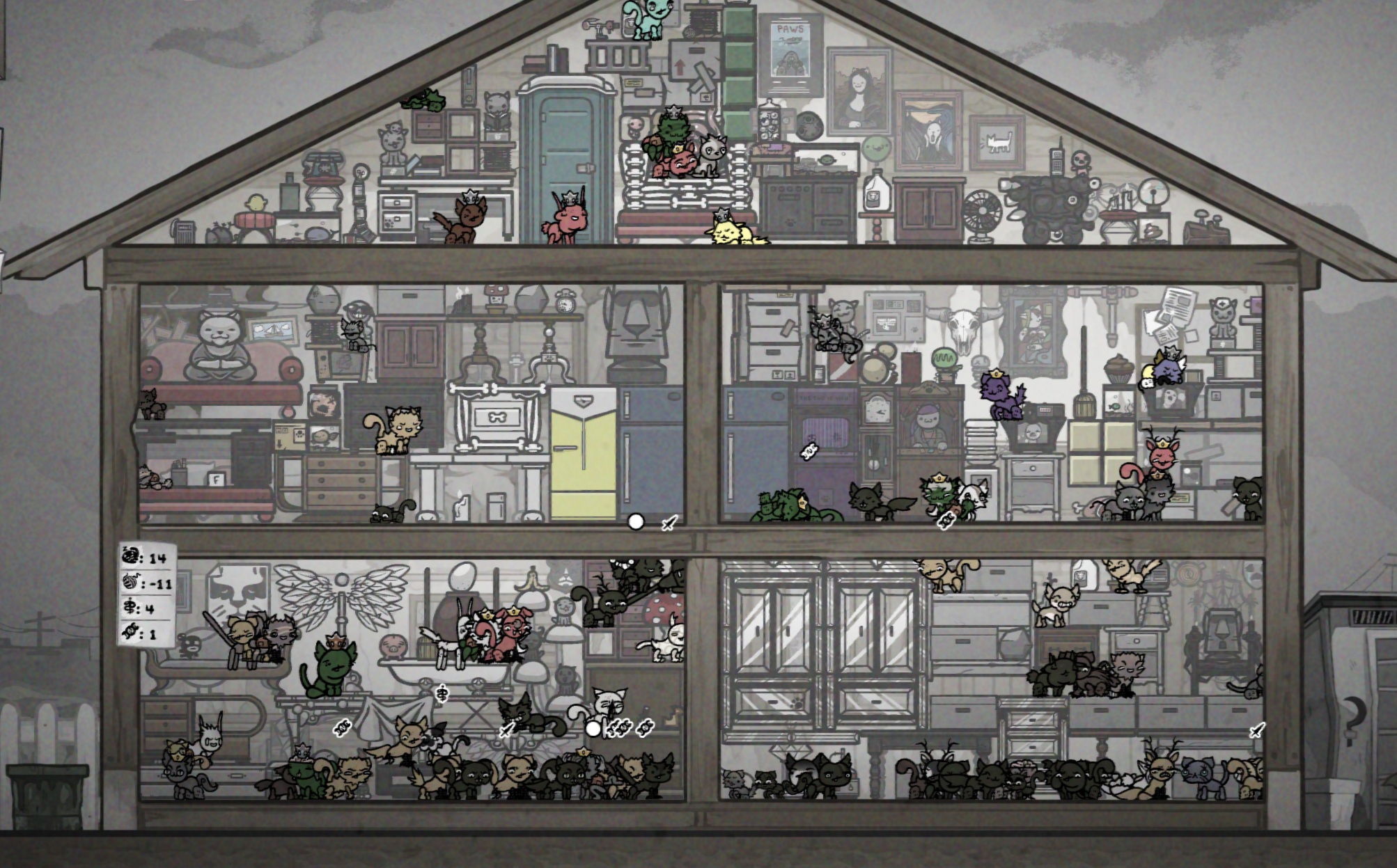 >>736085972if you put a bunch of mutation in a room you can stuff all your non-useful cats in there to farm new mutations as well as injured cats to pawn for furniture