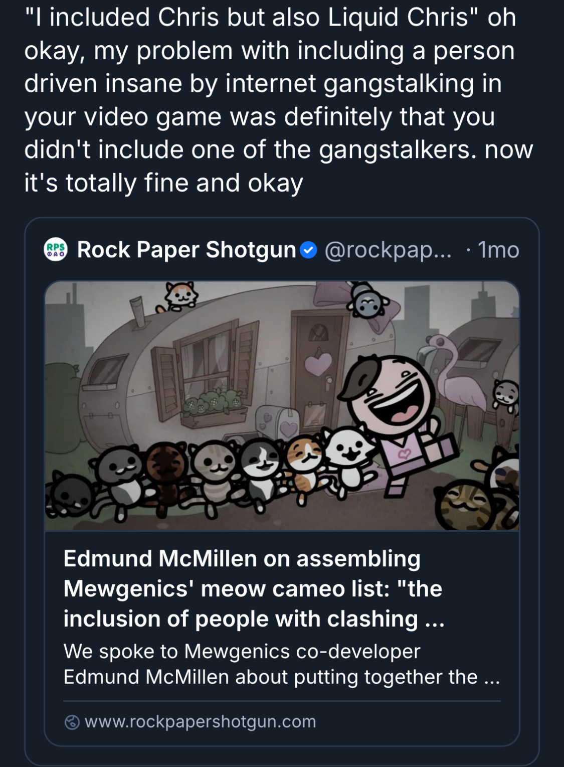 >>736085418Man I am hundreds of hours deep and I still haven't given the mystery man 100 cats. And before you say it, I know he will want 150 after I'm done. At least Butch is half way reasonable and gives good upgrades.