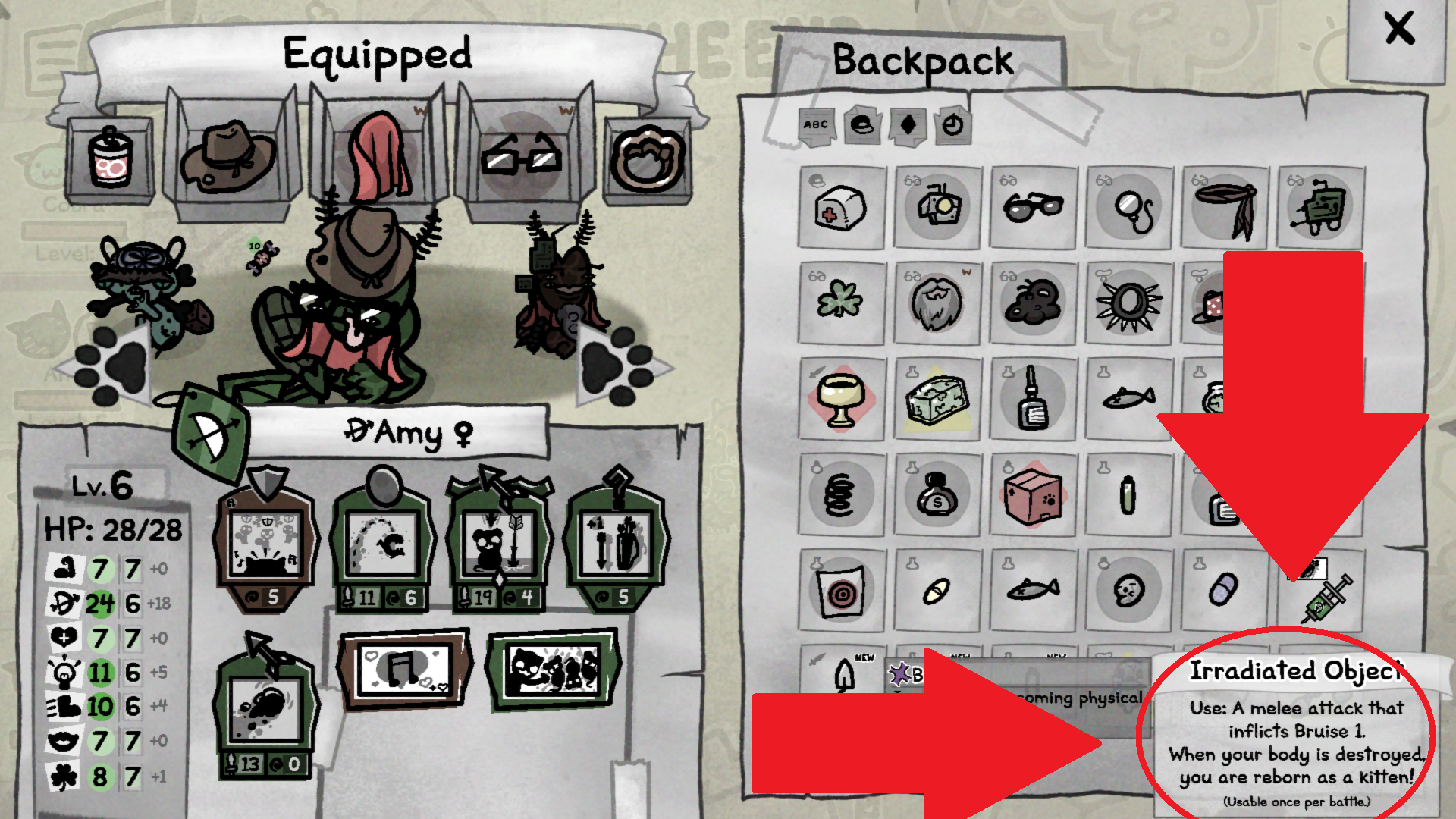 >>736089293Kill a cat, destroy the corpse, recieve a kitten of that catUse case is to use it on the last fight, a kitten cannot be a veteran so you can take it out for another adventure, it will also proc from stuff that doubles/triples trinketsI would not fucking trust a Irradiated Object to work for Catrib considering it doesn't give rerolls for the reroll one