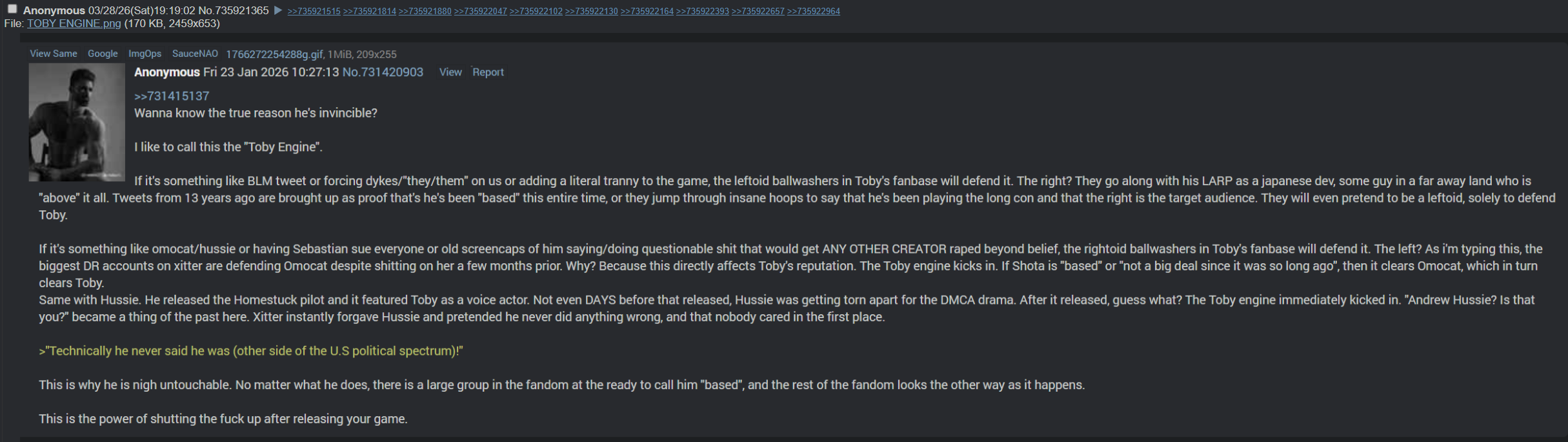 He's just lame, and this faggot >>736094159 pretends he's amazing