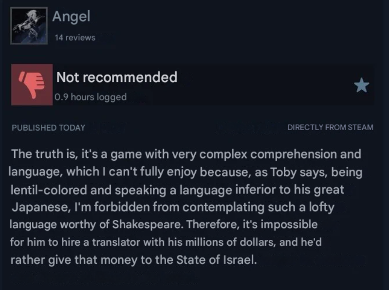 Wtf does israel has to do with refusing to pay a translator to translate your game ?