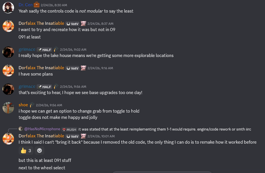 The discord is entirely disconnected from the reality of the player experience for votv and the game has only gotten worse over the last two years