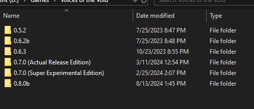 >>736095239Real Shit, it even has patch noteshttps://mrdrnose.itch.io/votv/devlog/1474386/voices-of-the-void-alpha-090