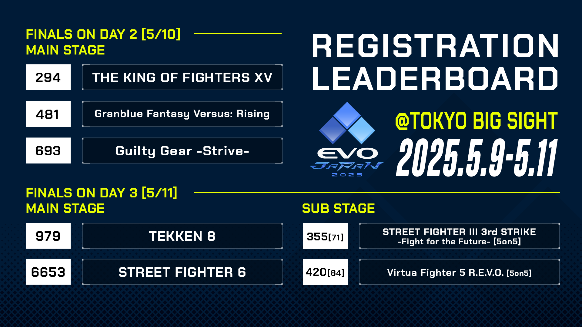 >>736099808Damn I felt like Strive and Granblue always been third and fourth respectively for years now especially Strive which is already 5 fucking years. Cool.