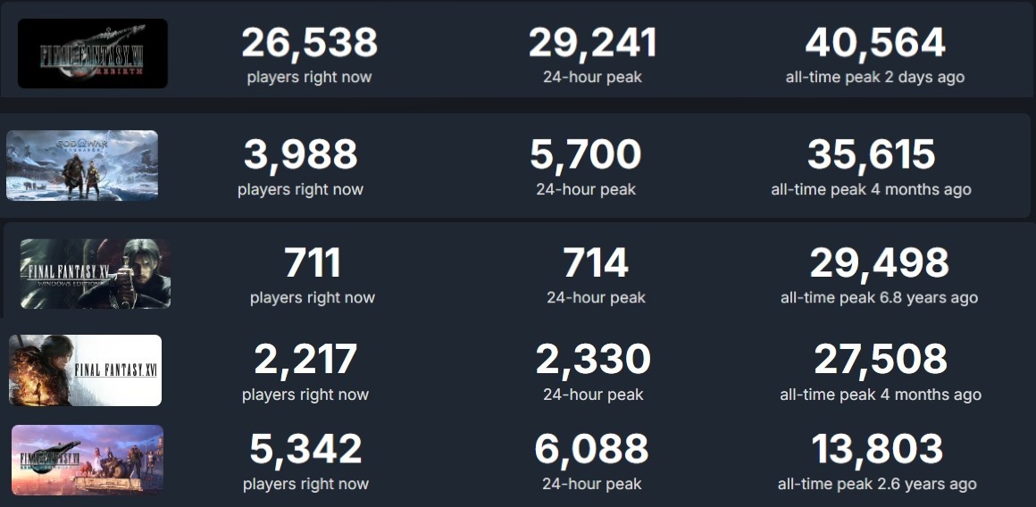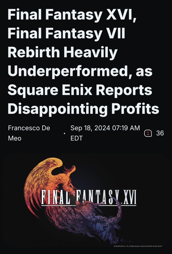 >>736103385>my shit was the best performing shit amongst this extremely curated list of shit games (all the games performed like shit btw)i'm sure square enix looked at that screenshot and thought: the billions of dollars were worth it