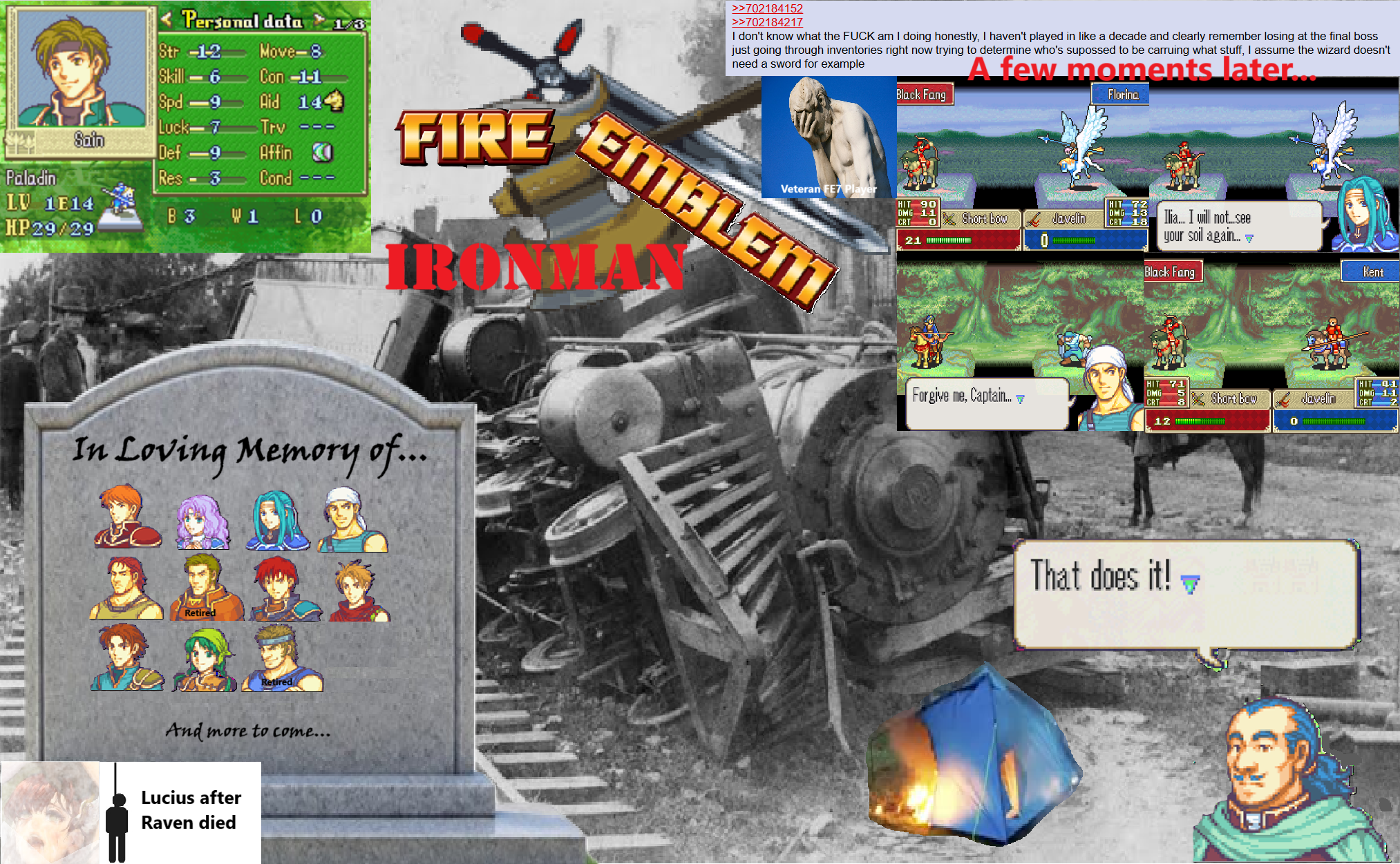 >decide to let Byron initiate the Tyrfing talk for positioning reasons>inventory is full>send broken Tyrfing to the convoy>it changes my fucking equipped weapon right before the enemy phaseWow, thanks Kaga, very cool. I didn't want those weapon kills anyway, haha.