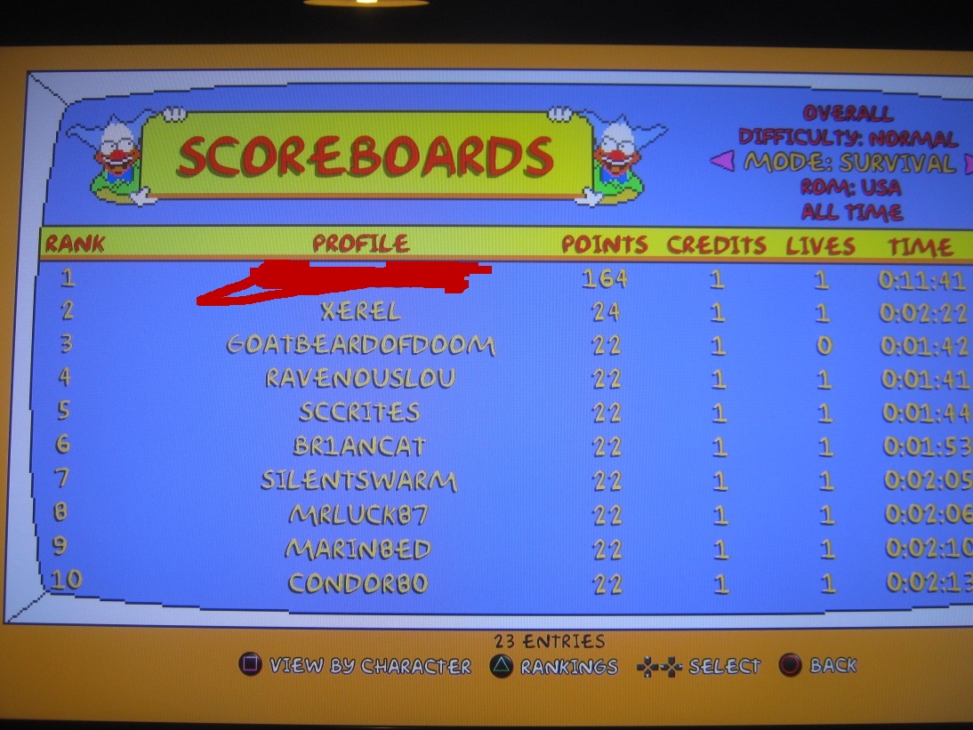 >>736116567Yes.I was number 1 in the alternative leaderboard for Rolling Thunder in Namco Museum on Switch, where they start you on the last stage and rank you based on how high of a score you can get as usual, but also have a score for how many times you got hit which is used as a tie breaker.I was 1st for about a week or two before 2nd place took his spot back and someone else bumped me down to 3rd.No idea if I'm still 3rd or not, I don't really care to go for the record again cause the game is ass and I hate it, plus I'm pretty sure 1st has a perfect score except for the number of times he got hit, so it'dbe really tedious to grind out. I'm satisfied with my short time of fame.
