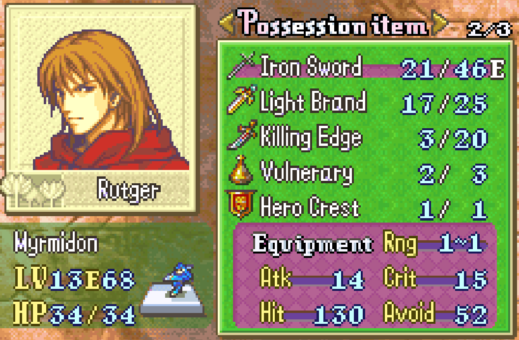 >>736189383rutger can get hit 3 times 2 axes and 1 balista he will likely be fine but just in case i traded away the hero crest he was holding to marcus.