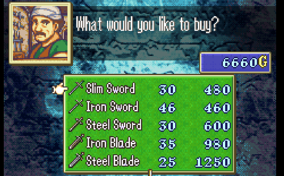 >>736118635Did you already do your shopping? Its the last armory we get for like 5 chapters and the next one has no swords