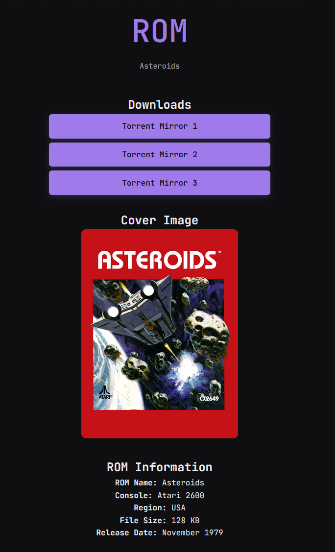 >>736150803Forgot to mention, most people looking for popular games are just going to use sites like Vimm since it also has those roms, and because of how casual-friendly it is.