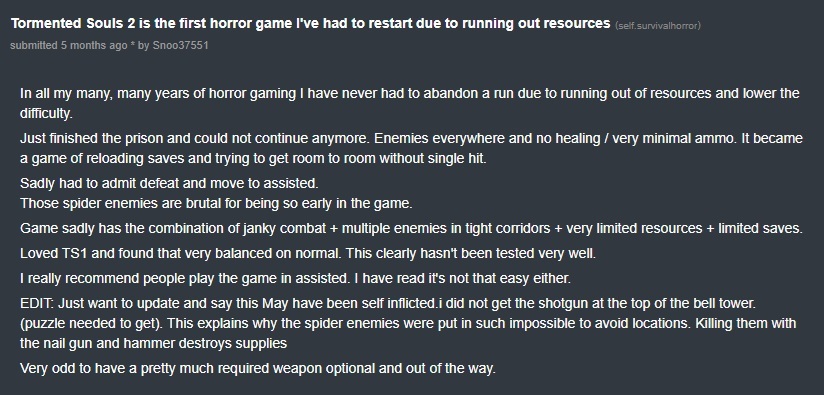 Tormented Souls 2 is excellent and even filters redditors. Who the fuck doesn't climb the bell tower? You see a bell tower, you climb it.