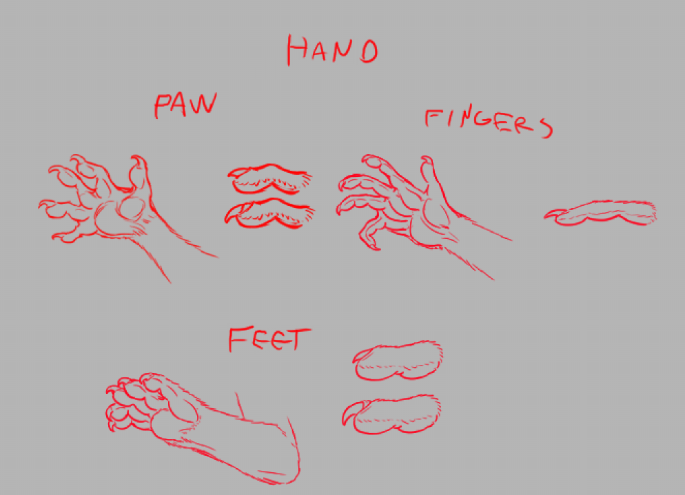 >>736148301they should have paws with slightly elongated digits and opposable thumbs, not fingers