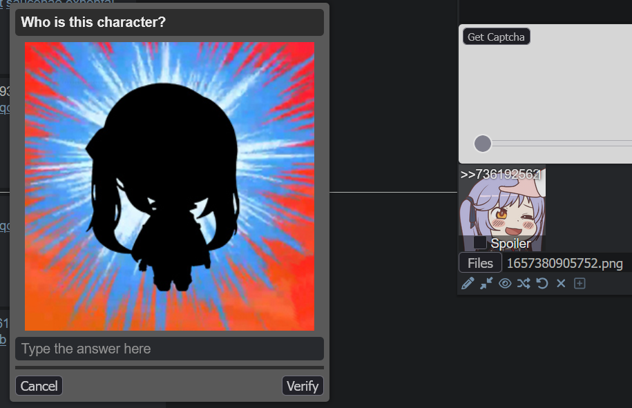>>736178312I got the nice boat captcha when posting that