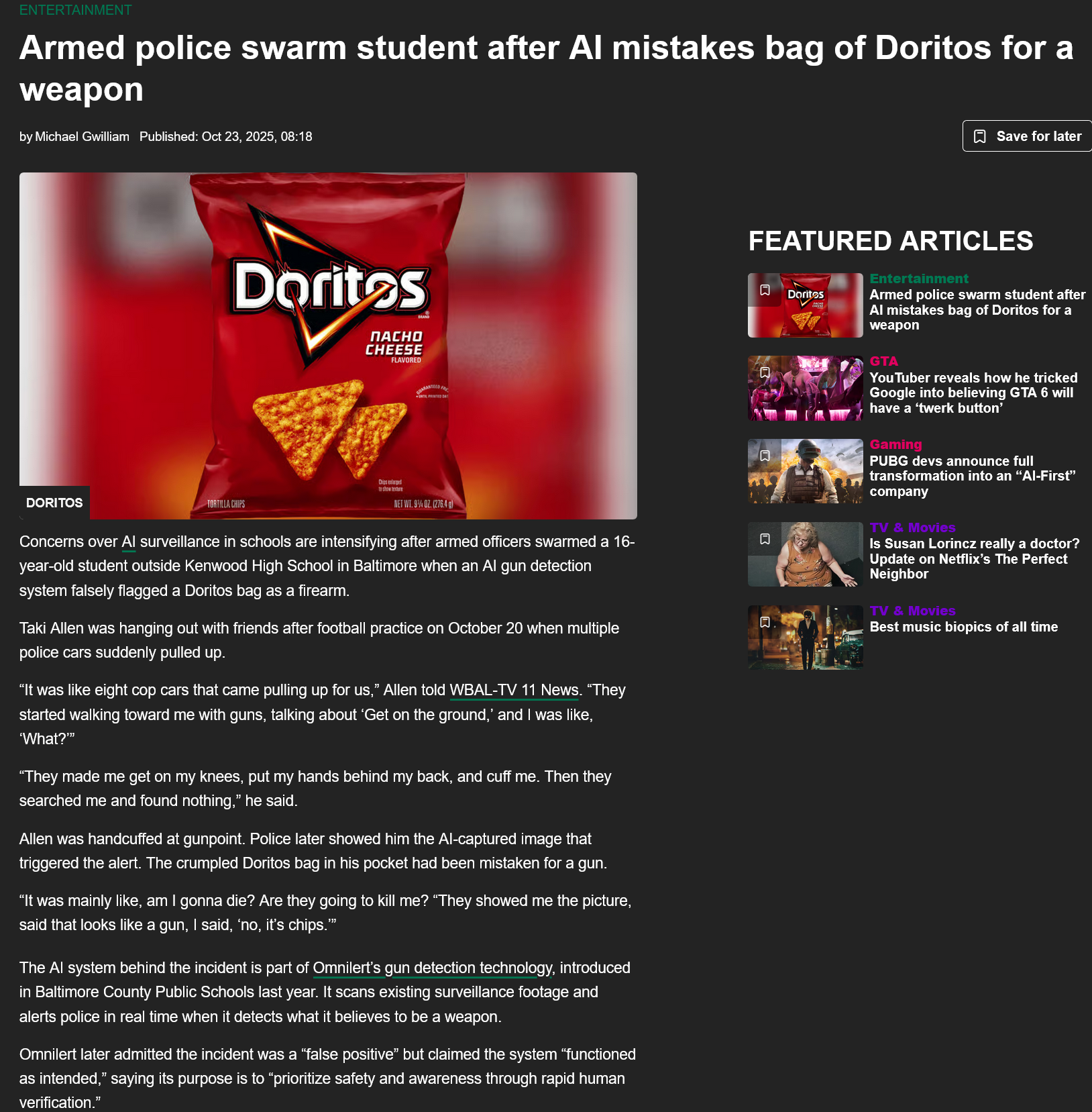 >>736142201The AI gun would not have fired at the AI Doritos.