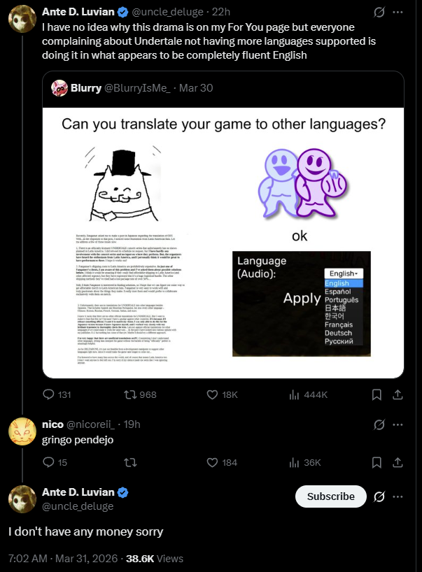 I’d rather learn Japanese than Spanish because I know moonrunes are genuinely too much effort for South Americans to follow me